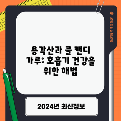 지금 바로 여러분의 호흡기 건강을 챙겨보세요. 용각산과 쿨 캔디 가루가 여러분의 쾌적한 생활을 돕는 해법이 될 것입니다!